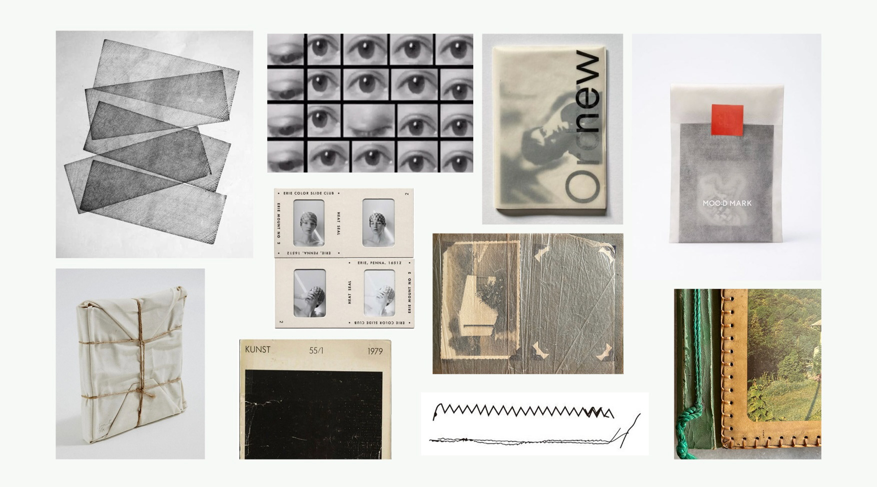 Foram realizados diversos testes de materiais e cortes até chegar ao protótipo final, que se vale de papéis especiais com texturas que evocam álbuns antigos de família, envelopes de revelação fotográfica e superfícies que resistem ao tempo. Cada detalhe foi pensado para dialogar com o universo da fotografia analógica e com o gesto íntimo de abrir algo que não se sabe exatamente o que é. O design segue uma estética minimalista, com tipografia sutil e acabamento manual, priorizando o silêncio visual e o espaço para a palavra e o mistério operarem.
